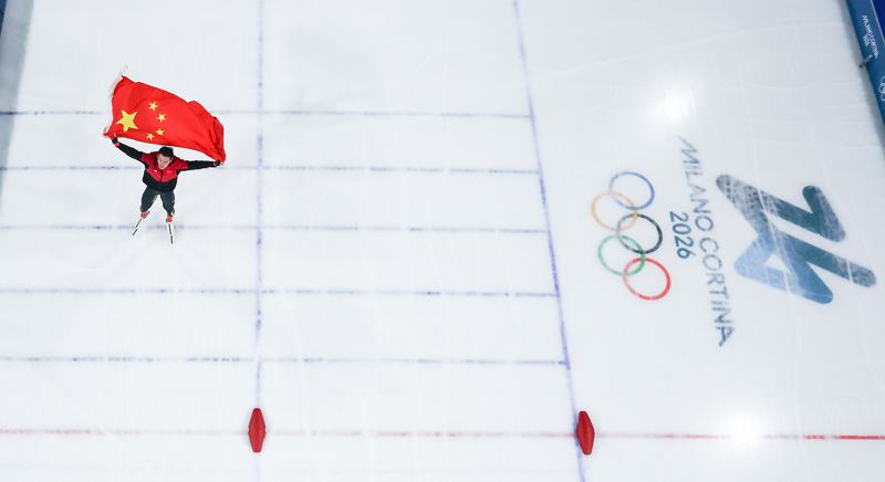 2月19日,宁忠岩在赛后身披国旗庆祝。\n    当地期间2月19日,米兰-科尔蒂纳冬奥会速率溜冰须眉1500米决赛介意大利米兰举行。中国选手宁忠岩夺得冠军,并刷新奥运记录。\n    新华社记者 杜潇逸 摄