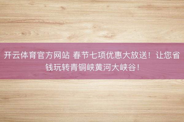开云体育官方网站 春节七项优惠大放送!让您省钱玩转青铜峡黄河大峡谷!