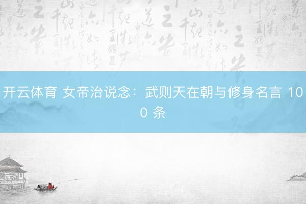 开云体育 女帝治说念:武则天在朝与修身名言 100 条