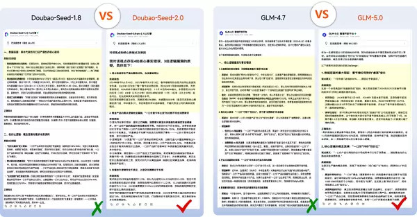 图为最新的Doubao-Seed-2.0、智谱GLM-5.0与之前版块的Challenge案例比较