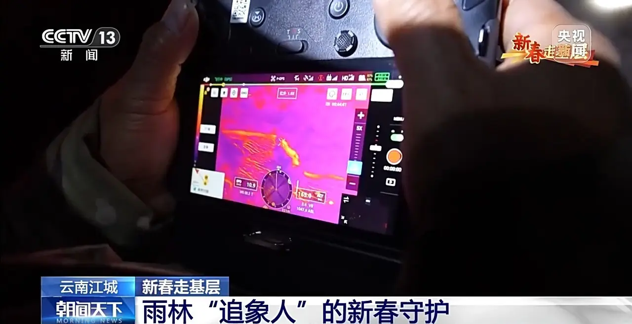夜幕来临,刁发兴倏得接到队友的辅导,说是象群也曾出山往墟落标的通顺。天然夜间山上没东谈主,东谈主与象径直际遇的概率较小。但若有象群进村,就会给村民们带来困扰和伤害。刁发兴就地诳骗热成像无东谈主机,开动监测象群相近情况。